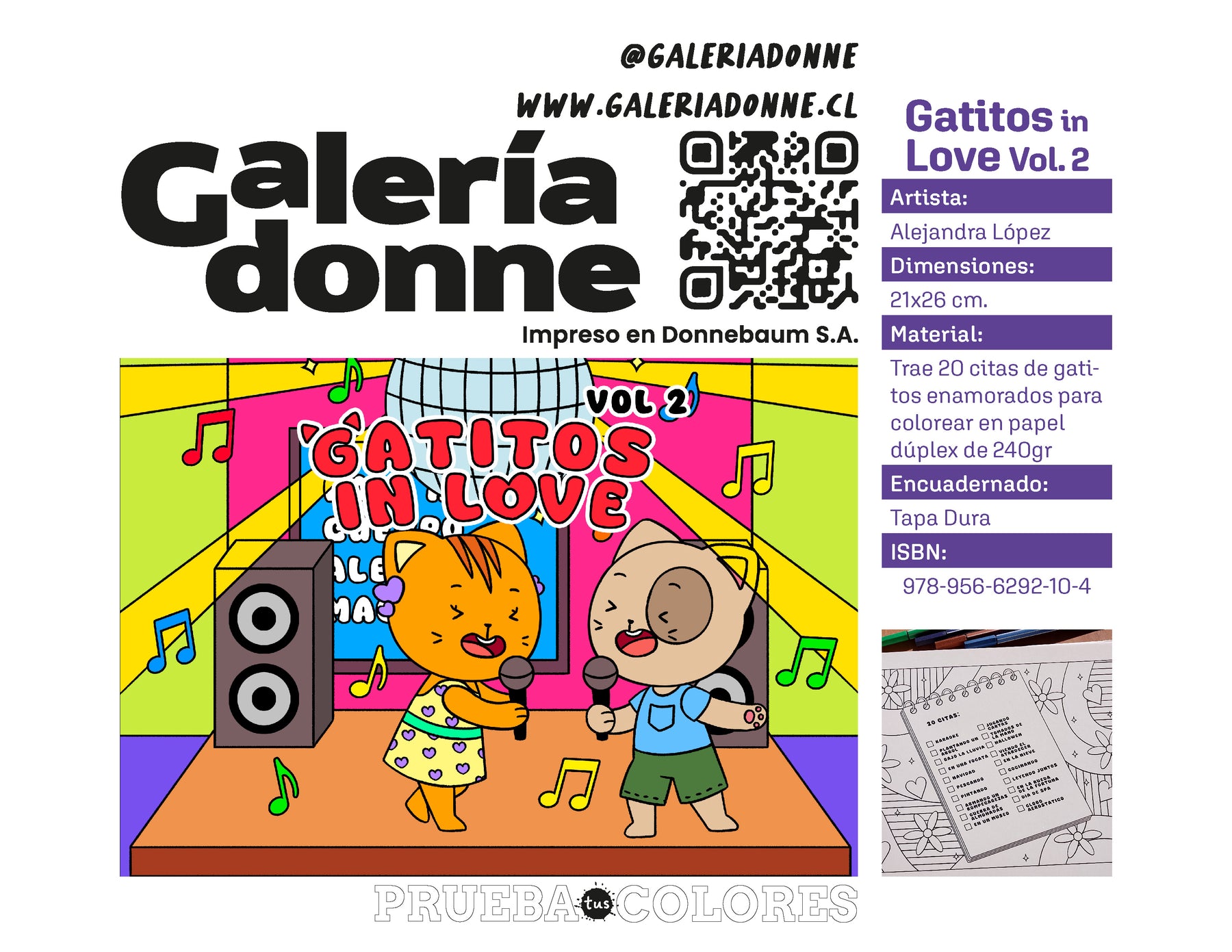 Trae 20 nuevas citas románticas de nuestros dos gatitos enamorados Coco y Mandarina. Las hojas para colorear son de papel dúplex de 240gr para que puedas utilizar técnicas mixtas como lápices de colores, plumones, acrílicos y acuarelas y no se traspase hacia el otro lado, el libro mide 21x26cm.